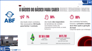 Em seguida, foram apresentados os benefícios de ser ABF como: Advocacy, Comunicação, Educação, Grandes Eventos, Informação, Infraestrutura, Internacionalização, Pesquisas de Mercado, Relacionamento e Representatividade.
