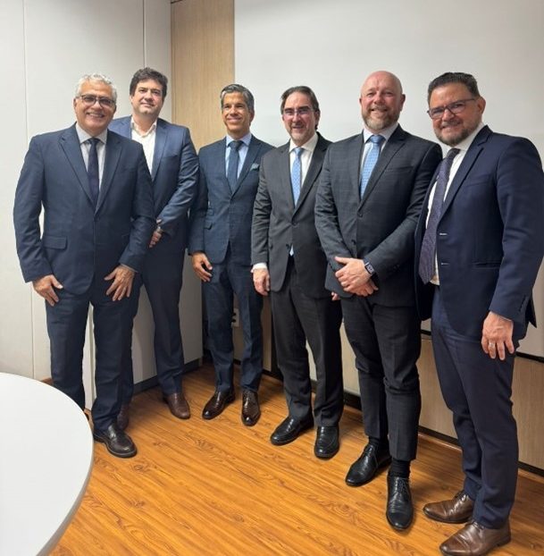 Liderados pelo presidente da ABF, Tom Moreira Leite, participaram do encontro Aluizio Neto, assessor parlamentar; Christino Áureo, deputado federal pelo Rio de Janeiro de 2019 a 2023; Marco Araujo, sócio da A2M Consultoria; Sandro Cupello, Chief Financial Officer (CFO) do Grupo Trigo; e Sidnei Amendoeira, diretor Jurídico da ABF.