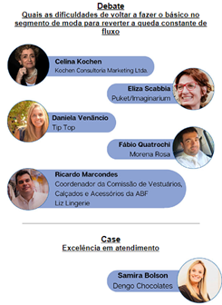 O debate contou com a participação de Celina Kochen, Elisa Scabbia, Daniela Venâncio, Fábio Quatrochi e Ricardo Marcondes. O evento incluiu, ainda, a apresentação do case “Excelência em atendimento”, feita por Samira Bolson (Dengo Chocolates).