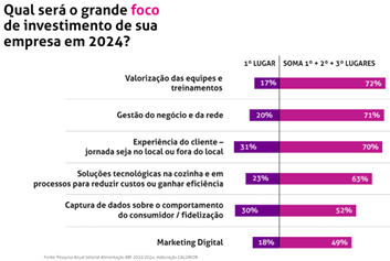 treinamentos com 72%, gestão do negócio e da rede com 71%, e experiência do cliente, para que a jornada seja no local ou fora dele com 70%.