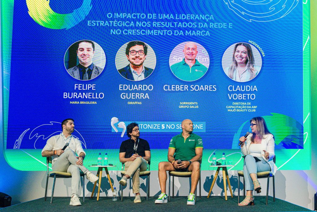 E, encerrando os painéis, “O impacto de uma Liderança Estratégica nos resultados da rede e no crescimento da marca” foi debatido por Felipe Buranello (Maria Brasileira), Eduardo Guerra (Giraffas) e Cleber Soares (Sorridents/Grupo SaluS), sob a moderação de Claudia Vobeto (diretora de Capacitação da ABF/Majô Beauty Club).