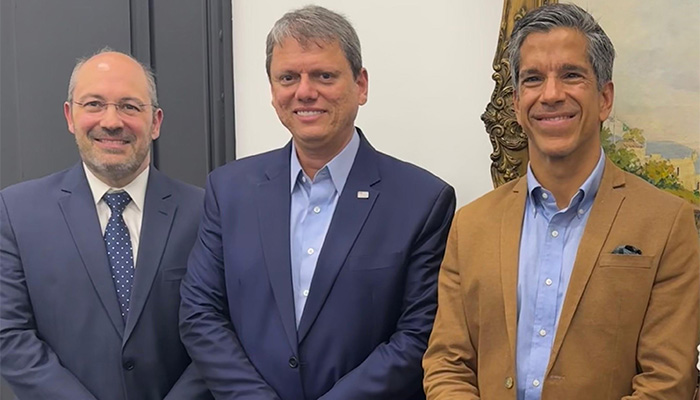 Tom Moreira Leite e Fernando de Paula, diretor Institucional da entidade, trataram da manutenção do regime especial tributário em reunião com o governador Tarcísio de Freitas.