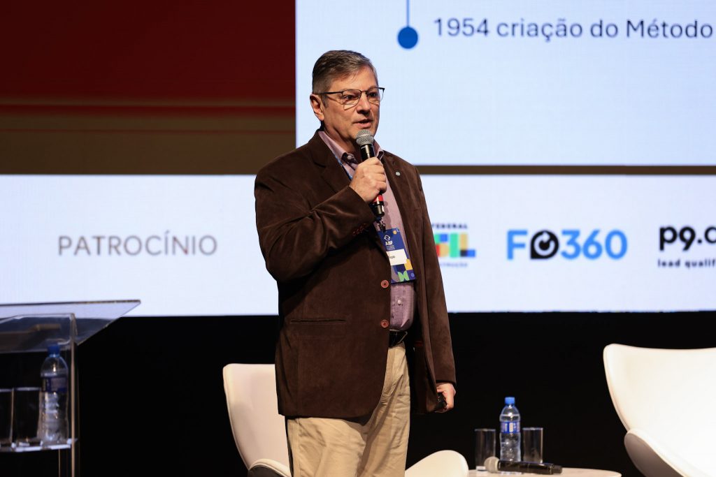 Júlio Segala apresentou a trajetória do Kumon, criado em 1954 no Japão e presente no Brasil desde 1977. Hoje, a rede soma 1.607 unidades em 611 cidades brasileiras e está em 60 países.