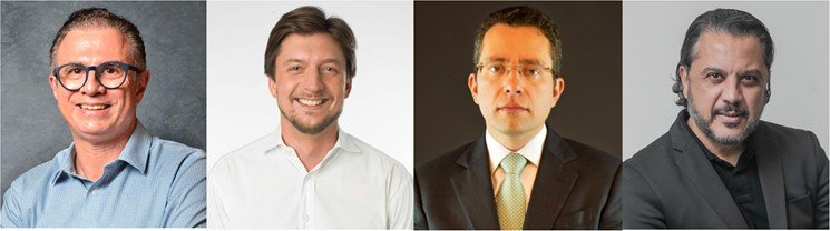 | (A partir da esq.) Rogério Gabriel e Alexandre Guerra foram eleitos, e Fernando Tardioli e Juarez Leão, reeleitos para o Conselho da ABF |